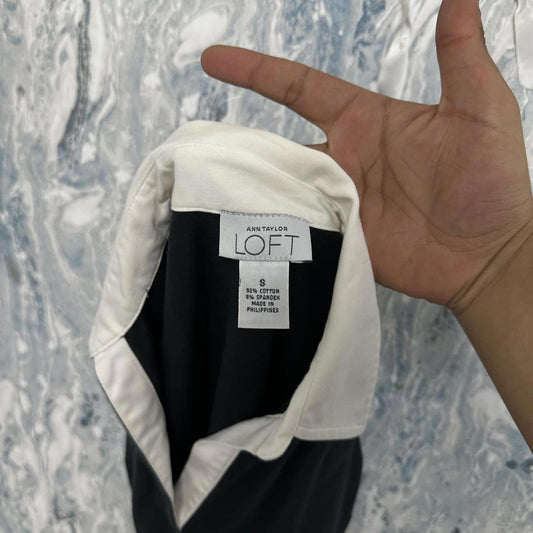 ANN TAYLOR LOFT Y2K Preppy Goth Black Sleeveless Dress with White Collar (S)