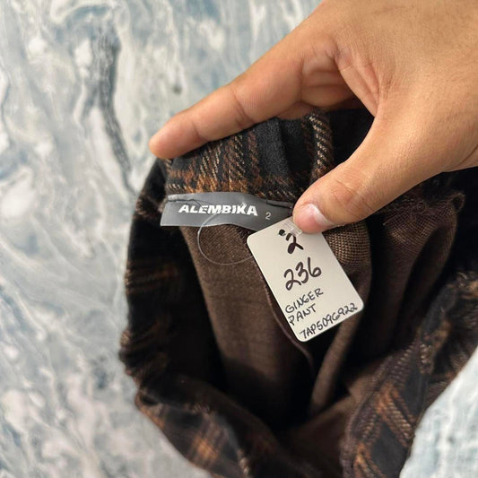 ALEMBIKA Brown Plaid Wide Leg Casual Pants (2)
